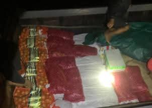 Setelah dilakukan pemeriksaan, petugas menemukan tiga orang awak kapal dan barang muatan berupa ±110 karung bawang, ±11 karung cabe merah, dan ±14 boks daging.