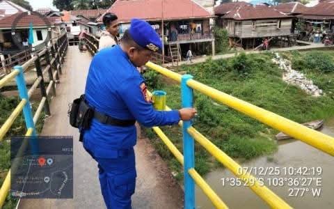 Ungkap.co.id – Personil Ditpolairud Polda Jambi bersama-sama masyarakat Pulau Pandan, Kelurahan Legok, Kecamatan Danau Sipin, Kota Jambi, melakukan perbaikan dan pengecatan terhadap jembatan yang menghubungkan Kampung Pulau Pandan dengan Pasar Angso Duo, Ahad (7/12/2025).