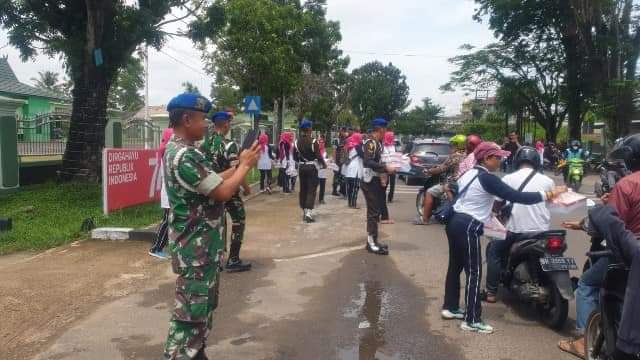 Ungkap.co.id – Personil Detasemen Polisi Militer (Denpom) II/2 Jambi, bersama persit KCK dan staf bagikan bingkisan kepada pengendara sepeda motor di Jl. Gajah Mada No.1, Jelutung, Kec. Jelutung, Kota Jambi pada Jumat siang.