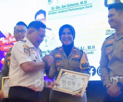 Penghargaan tersebut diterima langsung oleh Kapolres Batang Hari diwakili oleh Wakapolres Kompol Roslinda RM, didampingi Kasat Lantas AKP Agung Prasetyo Soegiono dan Bripka Anggun Priyahdi.