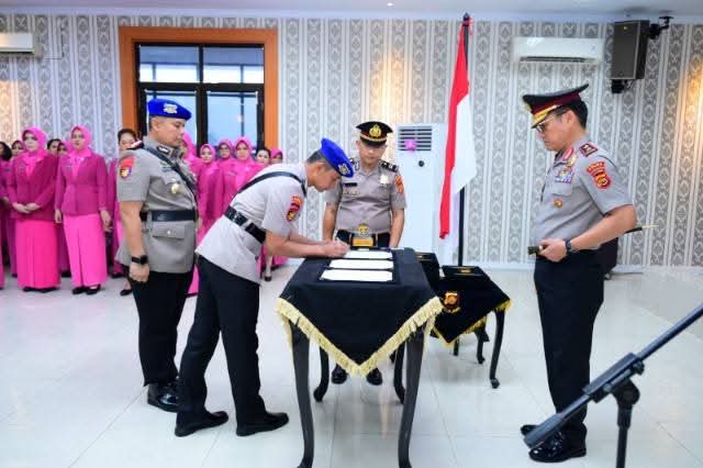 Upacara sertijab berlangsung khidmat dan tertib yang diawali pembacaan keputusan Kapolri, pengambilan sumpah jabatan, penandatanganan berita acara, hingga penyematan tanda jabatan oleh Kapolda Jambi Irjen Pol Krisno H. Siregar.