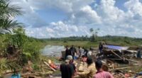 Tim Gabungan Razia Tambang Emas Ilegal di Dam Betuk, 15 Rakit Dompeng Dimusnahkan