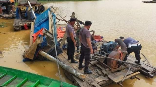 Polres Merangin Temukan 24 Perahu Penambangan Emas Ilegal, 8 Dirusak