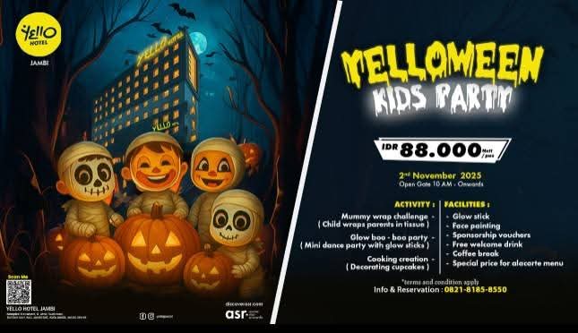 Ungkap.co.id – Sambut momen Halloween dengan cara yang seru dan penuh keceriaan di Yelloween Kids Party bersama Yello Hotel Jambi. Acara spesial ini akan digelar pada 2 November 2025 dimulai pukul 10.00 pagi hingga selesai.